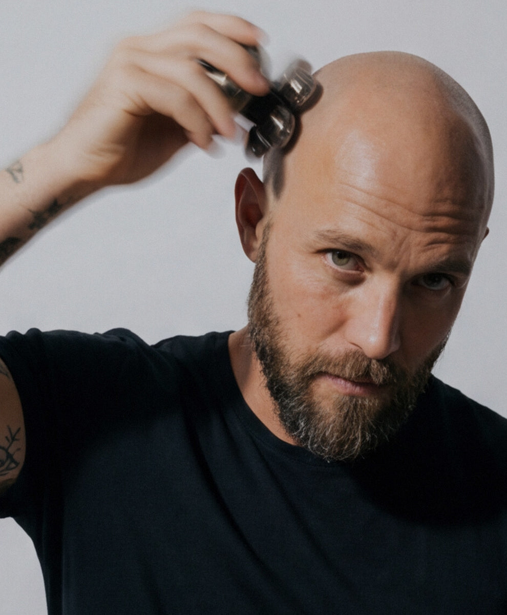 Unsere Produkte wurden speziell für die Kopfrasur entwickelt und sind aufeinander abgestimmt. Der Head Shaver sorgt für eine gleichmäßige Rasur, die Bald Cream beruhigt die Haut danach und sorgt für ein mattes Finish.