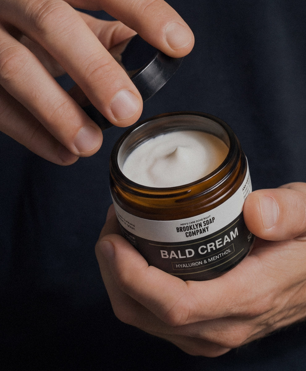 Gesichtscremes sind oft zu reichhaltig und hinterlassen Glanz. Die Bald Cream ist speziell für rasierte Kopfhaut entwickelt und sorgt für ein leichtes, mattes Finish ohne fettigen Film.