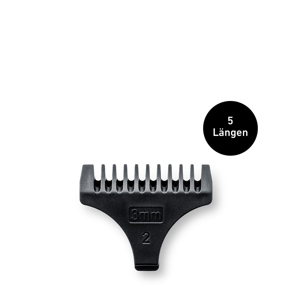 Dieses Set besteht aus 5 Aufsätzen in den Längen 2, 3, 4, 7 und 10 mm, mit denen du ganz einfach längere Bartlooks kreieren kannst.