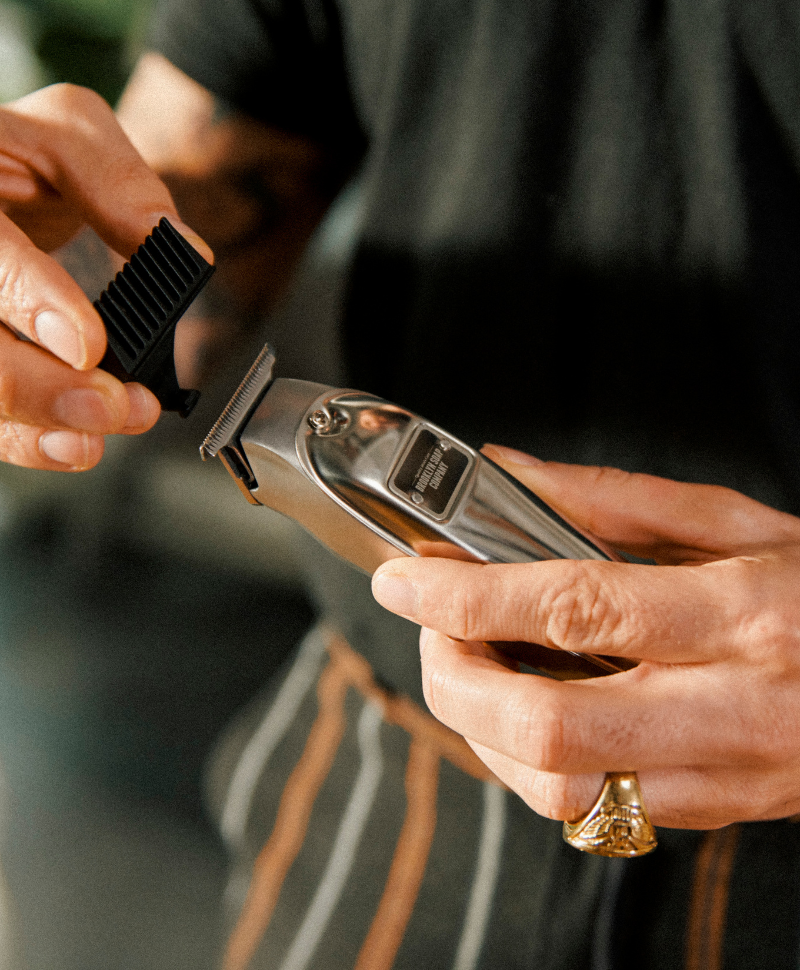 Schritt 2: Trimme deinen Bart mit der Brooklyn Blade und den beiliegenden Aufsätzen auf die gewünschte Länge.
