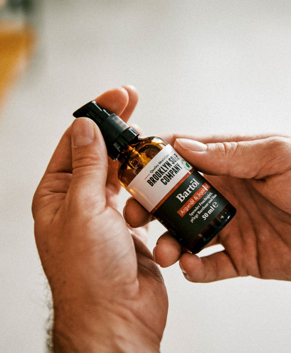 Ein gutes Bartöl setzt auf natürliche und ätherische Öle, die deinen Bart pflegen und gut aussehen lassen. Besonders beliebt sind Rizinusöl, Jojobaöl, Arganöl und Mandelöl, weil sie besonders viel Feuchtigkeit spenden, einen angenehmen Glanz verleihen und Haut und Barthaare nachhaltig pflegen und mit jeder Menge Nährstoffe versorgen.